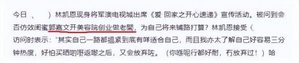 早在去年9月份的时候,林凯恩在采访中透露郭嘉文已经开美容院创业做老板了。看来,在催婚无果的情况下,郭嘉文也是及时调整了自己的状态,不再当媒体眼里的“金丝雀”了。