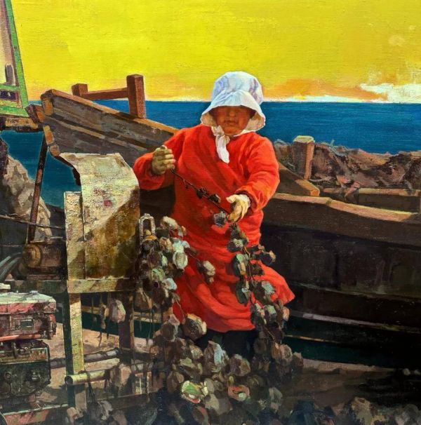 然而,时光的车轮不会停下,带着遗憾的2024年已然离去,充满革新精神的2025年正款款走来。在这新旧交替之际,严子宇老师给我传来一幅油画,名为《不忘初心,砥砺前行》。画面中,一对夫妻清晨在海边,迎着冷冽的海风,专心致志进行海蛎收割作业。看着这幅画,我不禁陷入沉思:2025,我们在艺术市场是否也能像画中的主人公一样,不惧“严寒”,坚守初心,勇往直前,为创造“美好生活”而奋进?
