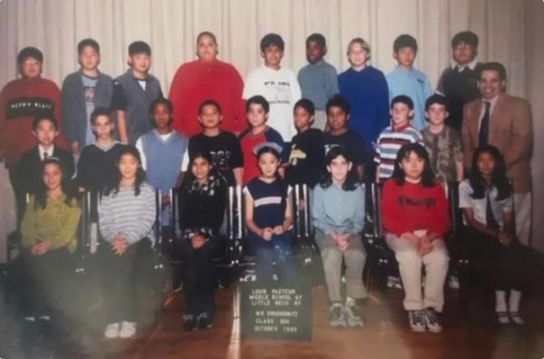 在曝光的初中照片中,年仅12岁的刘亦菲就已经坐在了班级的C位,穿着一件简单的深色短袖和复古牛仔裤,却在一群孩子中显得格外耀眼。