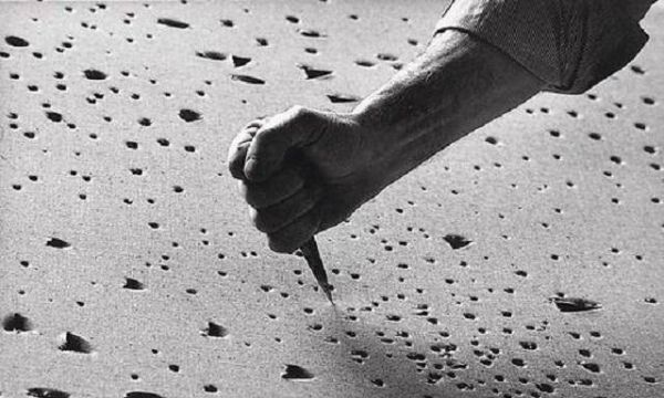 封塔纳的前半生虽然也一直致力于艺术创作,但却从未引起过反响。未有所突破,只是普通画家中的一员。直到后来他将自己独特的想法融入了艺术创作,封塔纳最开始尝试着在画布上通过最简单的方式来展现出无穷的思想。他曾在画布上“打洞”,站在画布的一面像扎破的洞里望去似乎看到的并不只是单纯的画板,而是藏在画布后的一个神秘空间。