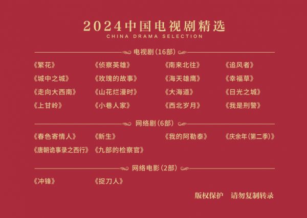 2024中国电视剧精选公布 《繁花》《追风者》等24部作品入选