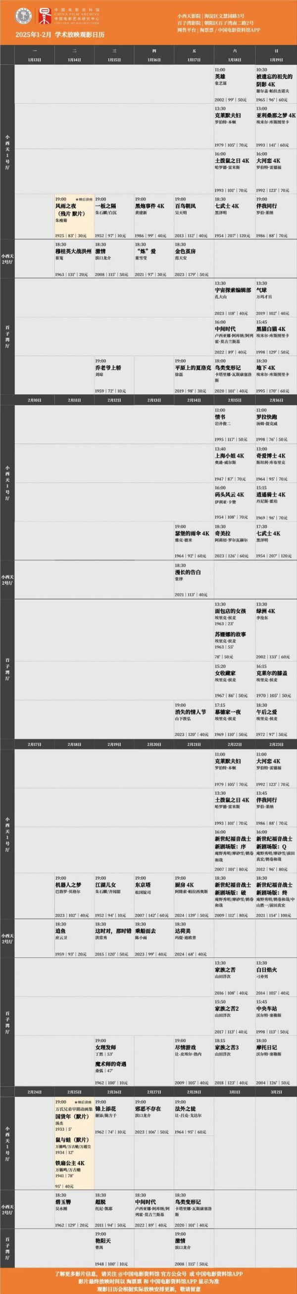 所有场次均可在淘票票、中国电影资料馆APP购票,具体排片见末图,祝大家观影愉快。❤️