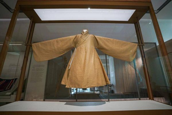 上博东馆展陈的明代满地黄梅朵花纹丝布夹袍摹制品 (于颖 提供)