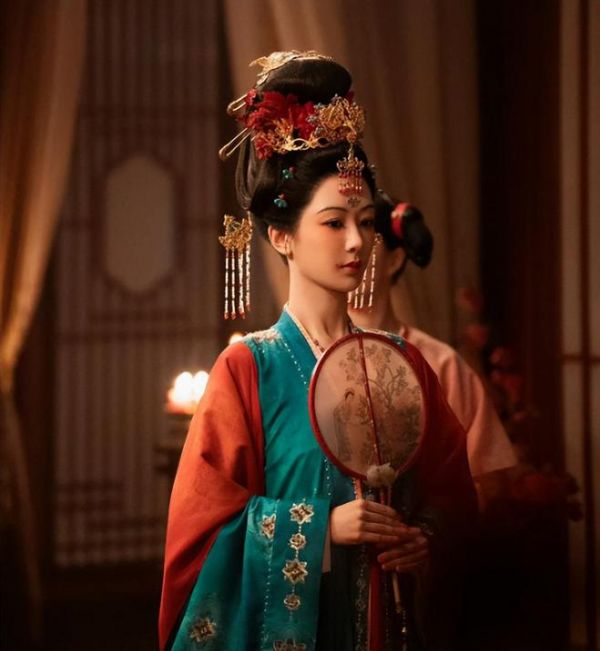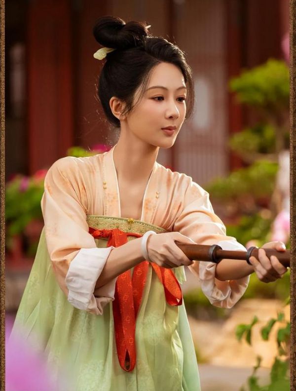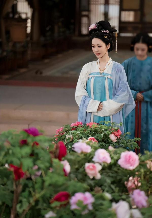 头配花,着仕女妆,配上齐胸长裙,花式点缀头发与面部,杨紫的古装,让杨玉环的形象都有了具象化。