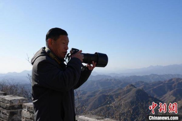 河北省承德市滦平县花楼沟村,一群农民摄影师通过镜头,将金山岭长城的壮丽景色展现在世界面前。20世纪80年代末,金山岭长城景区对外开放,中外摄影爱好者来此拍照,耳濡目染中,越来越多的村民拿起相机。如今,花楼沟村有2名中国摄影家协会会员、10名河北省摄影家协会会员,并成立了村级摄影家协会,并在国内外摄影界崭露头角。图为1月17日,农民摄影师周广山拍摄长城风光。刘磊 摄