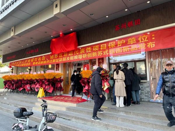在苏州十全街已整整经营20年的近水楼糕团店,由于原来的店面太小,前店后作坊经营模式制约了发展,为进一步弘扬苏式糕点非遗文化及自身企业拓展,由苏面传习所新一届常务理事、姑苏区非物质文化遗产“苏式糕团制作技艺”代表性传承人、苏式糕团第四代传人霍玉根先生,花重金在景德路“城隍庙”对面投资一家规模比原店大两倍的新店,1月21日正式开业。