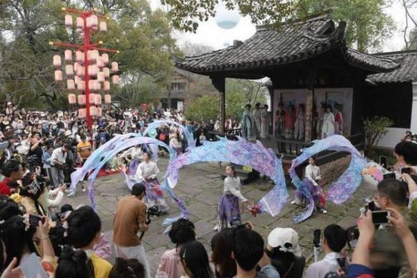 二月十五日相传是越国公汪华诞日。汪华是绩溪很有影响的地方神,大约自晚明开始,登源河畔的汪村、仁里、梧村、南观等十几个村落,各建花朝社,即迎神赛会的组织,先有十二社,后增至十八社,挨年轮值,那天在祠堂或村庙举行花朝会,有大花朝、小花朝之分,大花朝每十二年举行一次,小花朝逢闰年举行。起初的迎赛,只是敲锣鼓,放爆竹,抬会猪,撑旗幡,设会场供献,村民香烛祭祀。乾隆后就开始隆重起来,因为旅外商人纷纷归来,并斥资赞助,会场布置仿佛神宫,宫前搭彩棚,筑鱼池,张灯结彩,陈设字画、古器、盆景。嘉庆《绩溪县志·舆地·风俗》说:“十五日,登源十二社挨年轮祀越国公,张灯演剧,陈设毕备,罗四方珍馐,聚集祭筵,谓之赛花朝。其素封之家,宾朋满座,有主人素未谋面者。”那些献神的猪羊,披红插花,都特别肥壮,如吴梅颠《徽城竹枝词》云:“绩溪独作花朝节,保障功犹祀越公。羊大如牛人共诧,平台纸扎费多工。”自注:“绩溪,本歙之华阳镇,分为县。羊重二百余斤。”
