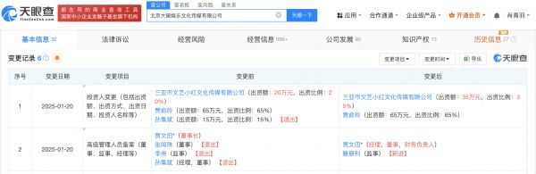 贾玲合伙人退出大碗娱乐公司 多位高管职位发生变更
