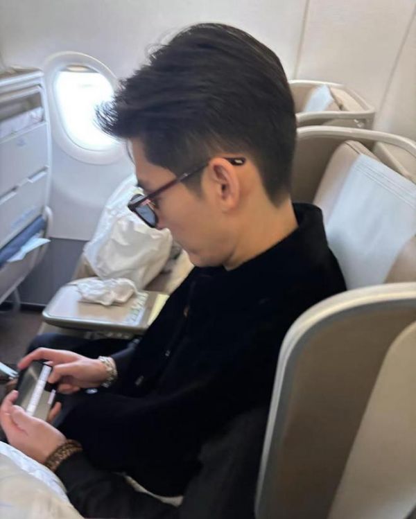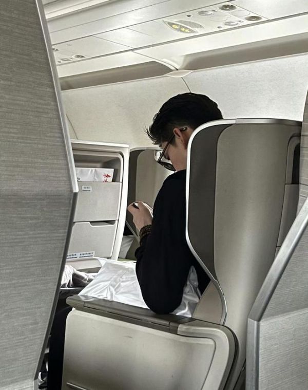 进入机舱后,张翰便找到自己的位置坐下,他一直在看着手机,正与其他人聊天。