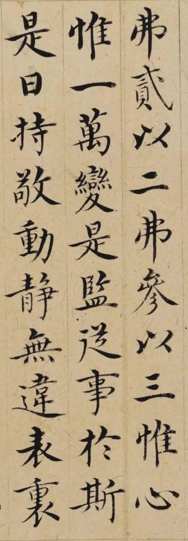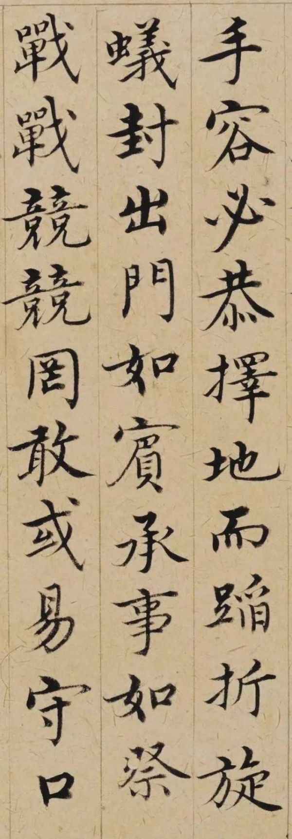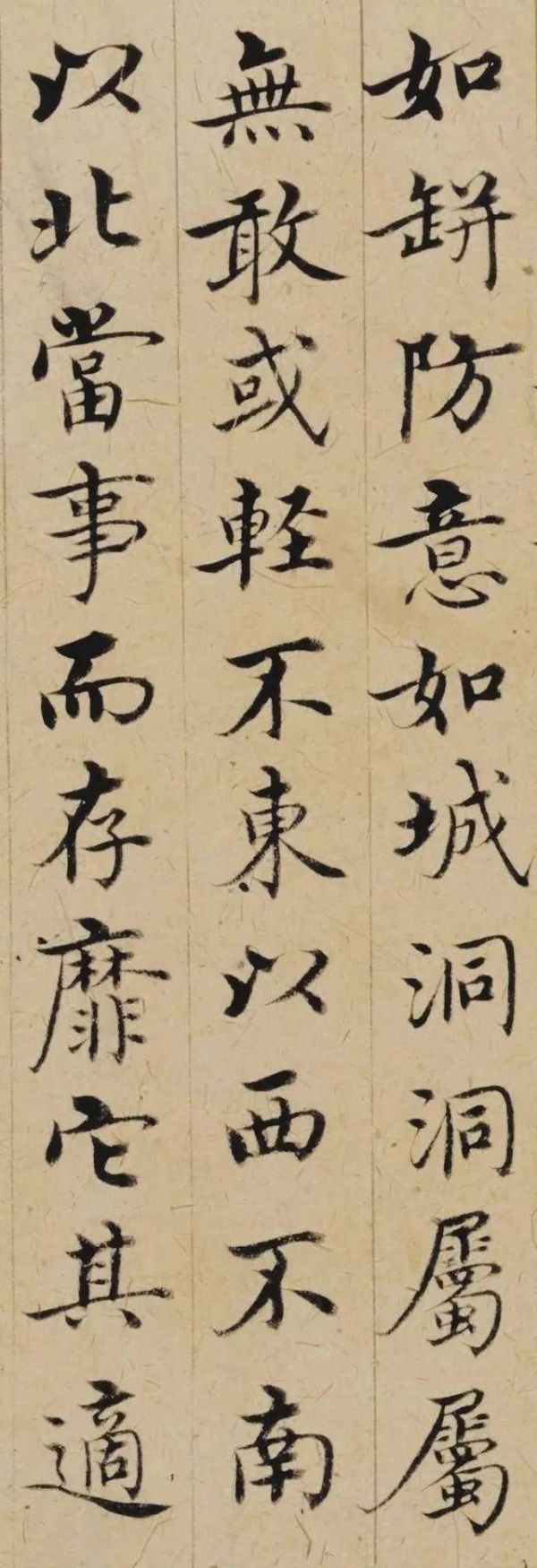《敬斋箴册》不仅技艺精湛,风格也独树一帜。沈度的书法以婉丽胜,阴柔秀润、平和姿媚,这种风格在《敬斋箴册》中得到了淋漓尽致的展现。全篇布势疏朗,笔意柔媚,起收之势皆能笔笔力到,一丝不苟。然而,在柔媚之中,又透露出一种刚健之气,使整篇作品在视觉上呈现出一种和谐统一的美感。