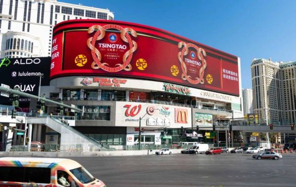 今年春节来临之际,青岛啤酒于美国纽约时代广场和世界上最大的广告屏幕—拉斯维加斯大屏幕上,向全球消费者送去了新春祝福:青岛啤酒给全球消费者拜年。