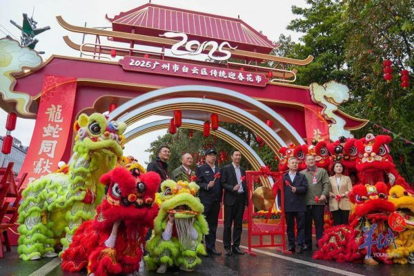 1月26日,广州市白云区传统迎春花市在白云万达广场正式开市。现场不仅有福蛇绕福道、“灵蛇集五福”、《白蛇传》巡游等蛇年要素,更有石马桃花王与巨型钻戒的浪漫结合、低空AI拍照打卡纪念、花卉科普课堂等等,满足市民游客对蛇年新年的美好想象。