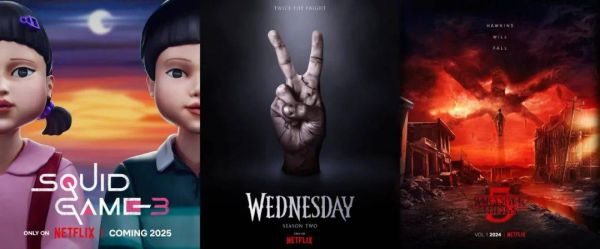 在回顾去年的成绩单后,Netflix还对今年即将推出的重磅内容做出预告。首先,Netflix史上最成功的三套剧集—《鱿鱼游戏》、《星期三》和《怪奇物语》—都将推出新一季,丹尼尔·克雷格则回归主演电影《利刃出鞘3》,知名导演罗素兄弟、吉尔莫·德尔·托罗、凯瑟琳·毕格罗和诺亚·鲍姆巴赫等也会有新作面世。同时,Netflix已开始每周直播世界摔角娱乐(WWE)的赛事,并将带来《一级方程式:疾速争胜》第七季、关注2024年巴黎奥运会美国男子篮球队的《金牌球场》以及《爱情盲选:法国篇》等纪录片和真人秀节目。