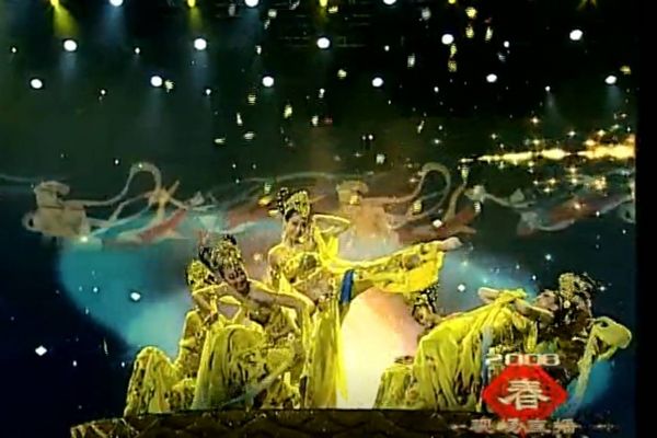 2008年春晚舞蹈节目《飞天》,创作灵感源自敦煌莫高窟的飞天壁画,舞者们凭借飘曳的衣裙和飞舞的彩带,化身千姿百态的飞天形象,给人以美的享受。
