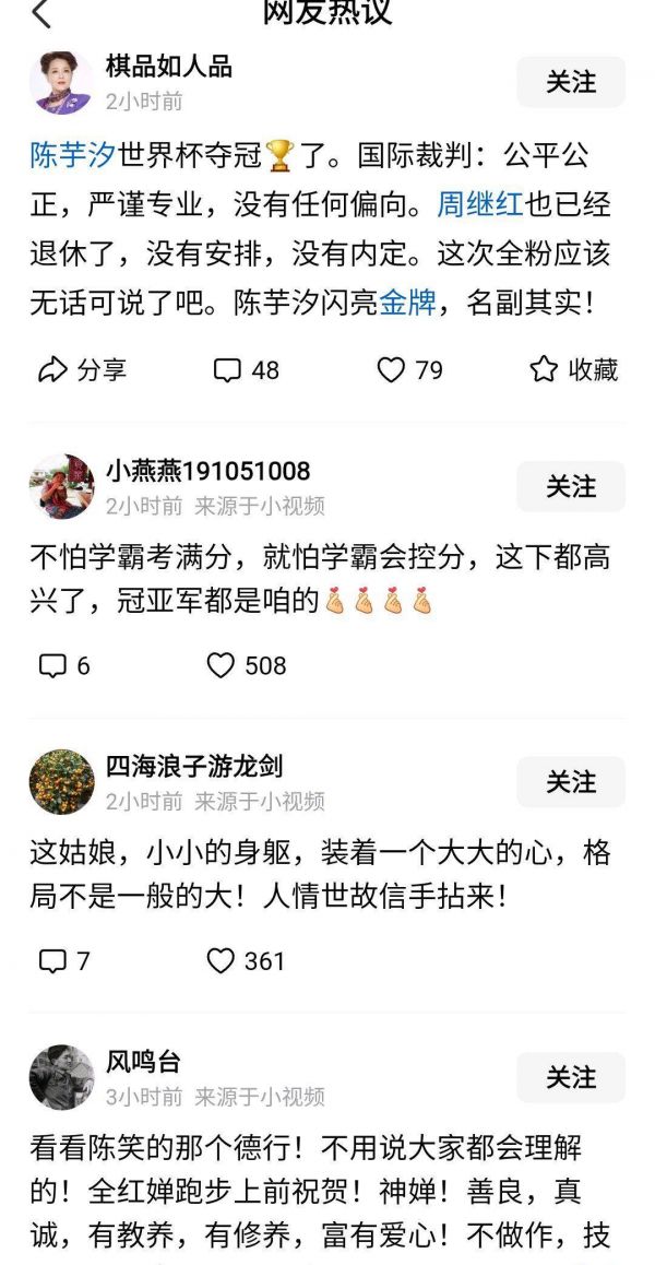 赛后,这段视频在社交媒体迅速传播,播放量突破千万。网友纷纷发表看法,有人表示:“全红婵失误只是偶然,她的实力有目共睹,未来肯定能再次证明自己。”也有人称赞陈若琳的反应:“陈若琳一句‘哎呦’,满是对爱徒的关切,师徒间这互动太有爱,能看出教练在帮全红婵缓解压力。”还有人鼓励全红婵:“失误不可怕,重要的是能迅速调整心态,全红婵未来可期。”