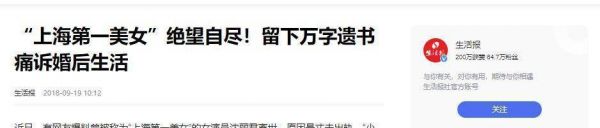 “上海第一美女”绝望自尽!留下万字遗书痛诉婚后生活