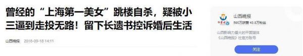 曾经的“上海第一美女”跳楼自杀,疑被小三逼到走投无路!留下长遗书控诉婚后生活