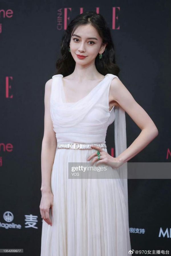 Angelababy一袭朦胧透视白纱裙 似圣洁的白天鹅