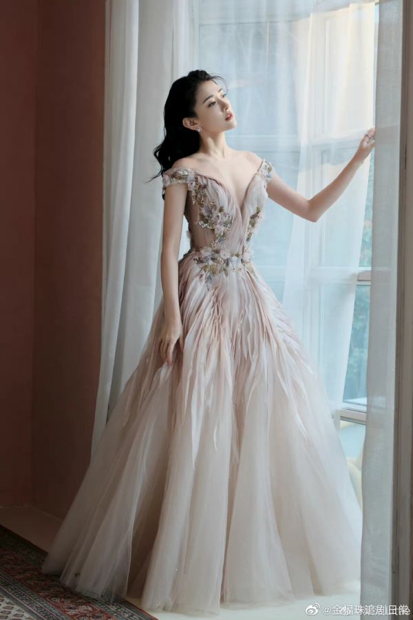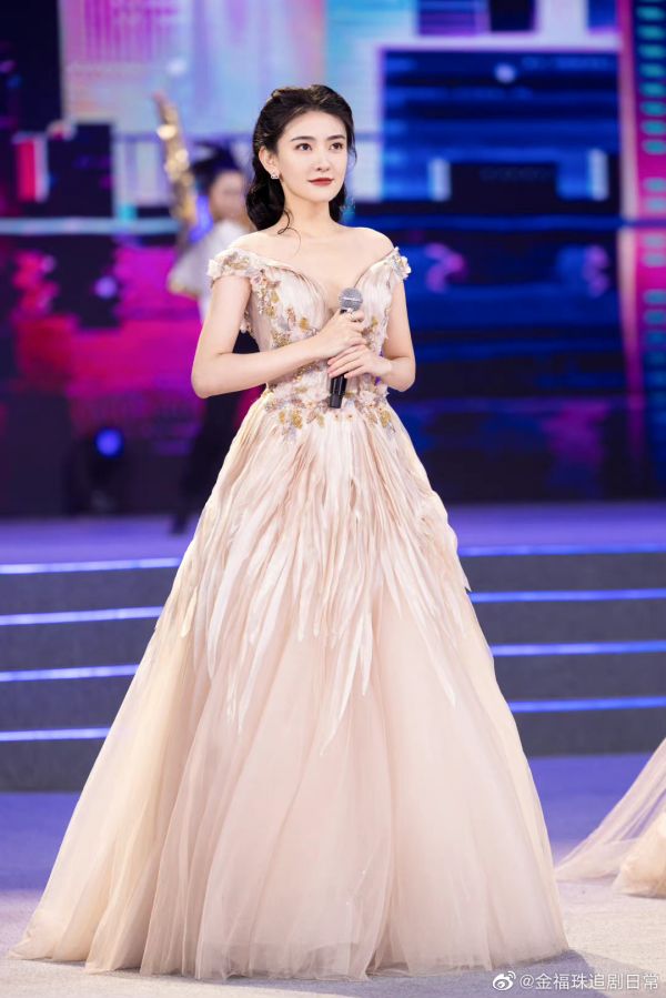 #梁洁[超话]#文联春晚的梁洁真的美出圈了!香槟粉色礼服裙,编发造型,一整个清纯娇艳,大气端庄