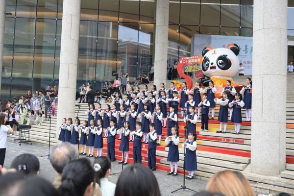 上午10点半,城市音乐厅喷泉广场前,由成都城市音乐厅青少年合唱团、四川音乐学院音乐教育学院管乐团、晓辉非洲鼓乐团联袂呈现的开放日开幕式准时上演。悠扬的歌声、激昂的管乐、铿锵的鼓点交织,瞬间点燃了现场气氛。