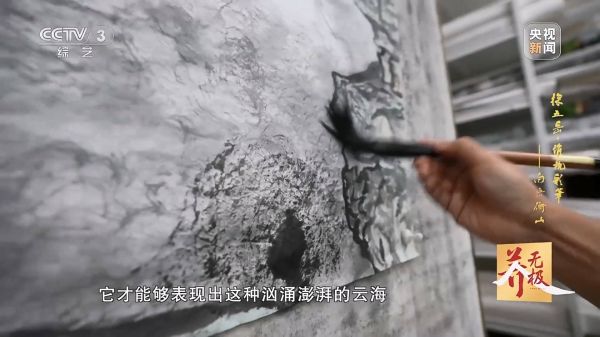 方向:我是结合了我们中国画的这种笔墨审美,以及我的感受。我比以前稍微大胆,只有带着这种气息来创作你的作品,它才能够表现出这种汹涌澎湃的云海,你要把附着在你身上的枷锁,附着在你身上的一些功利的东西去掉以后,你才能达到一种忘我的状态,我们叫“澄怀观道”。