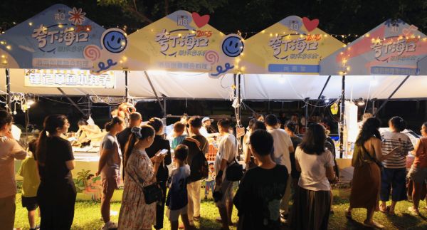 演出结束后,草坪市集却依然热闹非凡。观众们意犹未尽,悠然徜徉于一个个精致的手作摊位与香气四溢的美食摊位之间。Q弹清香的斑斓糕、清爽滑嫩的芒果肠粉、现制现售的清补凉、软糯香甜的椰子饭……琳琅满目的海南特色小吃汇聚于此,让人一站便能尽享地道琼岛风味。