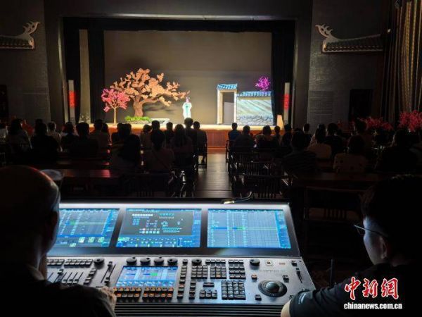 图为舞台技术人员在表演现场调控舞台灯光、音效。蒙鸣明 摄