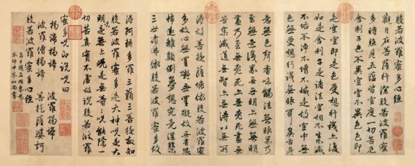 在历代书法家的作品中,书法大家赵孟頫的《般若波罗蜜多心经》是一颗璀璨的明珠。在目前保存下来的精品中,这一幅是赵孟頫书写后赠送给高僧中峰和尚的,运笔流畅自如,仿佛行云流水,展现出赵孟頫高超的书法技艺,现在珍藏于辽宁省博物馆。
