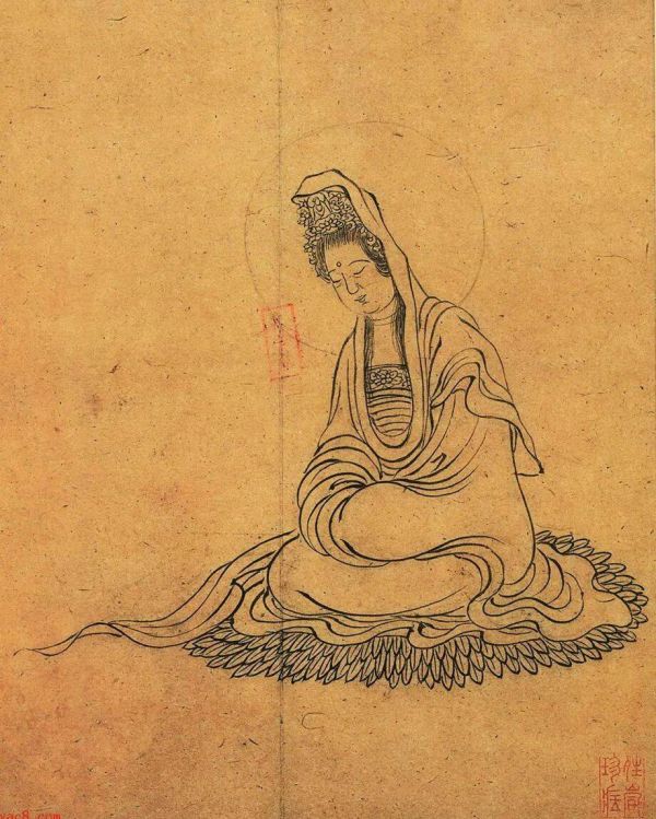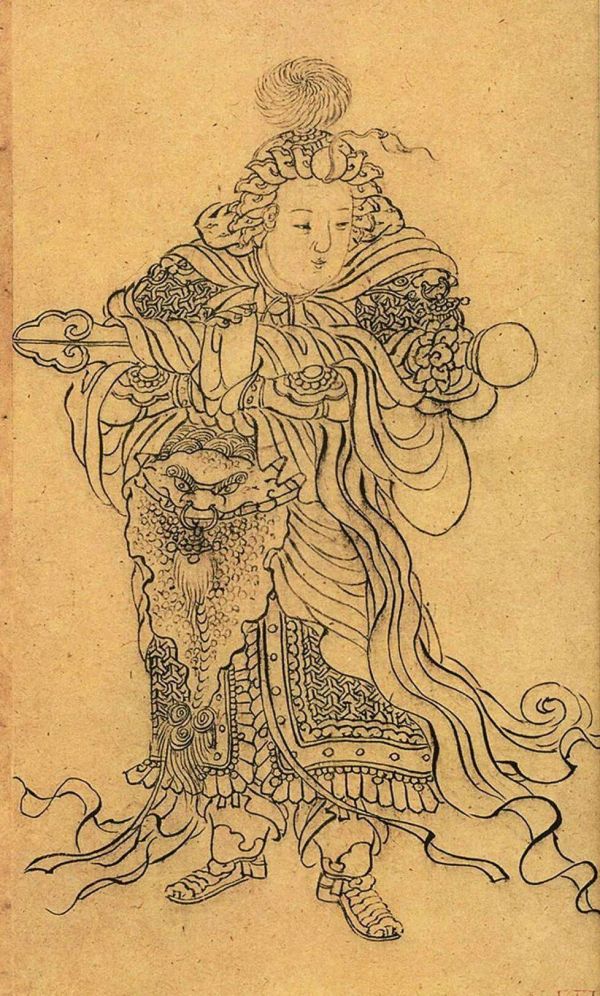 册页上的观音大士和韦陀像