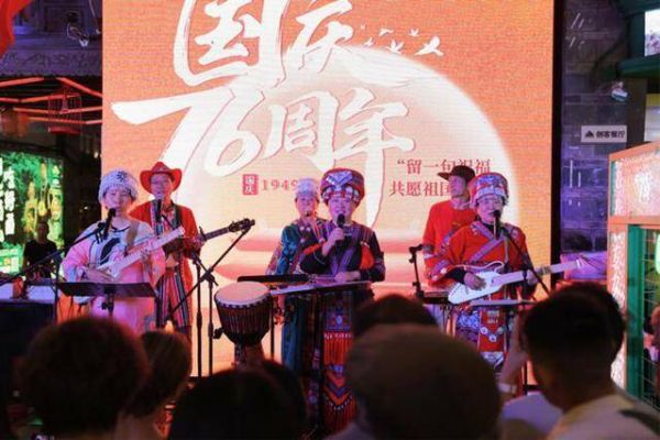 中秋之夜,街区特别邀请南强周边居民围坐于剧场天井间,在悠扬的民乐声中,大家一同赏圆月、分食月饼。作为承载昆明百年记忆的核心历史文化地标,南强街巷以“双节承古韵,国风尽南强”为核心理念,于10月1日至8日启幕国庆中秋双节主题活动。活动深度融合国风文化与街巷历史底蕴,联动可口可乐、风花雪月等品牌,依托青石板路、老式骑楼及八十八号庭院剧场等特色空间,为市民游客打造沉浸式的国风体验。
