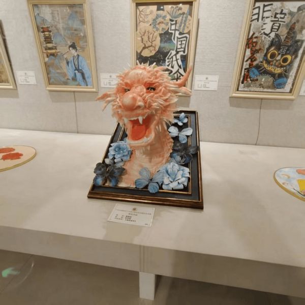 孩子们用稚嫩的笔触和鲜艳的色彩,描绘他们心中的中国传统文化。一幅名为《瑞龙呈祥》的立体装置作品,以立体造型、手工创作与综合组装等艺术手法,巧妙融合云卷云舒的磅礴之势与龙腾四海的灵动意象,通过创新性的空间叙事赋予传统祥瑞主题以现代审美意蕴。另一幅题为《长津湖》的立体装置作品,则以凝练的笔触诠释了“祖国利益高于一切”的崇高信念,彰显了中国人民志愿军在抗美援朝战争中展现的爱国主义精神与革命英雄主义气概,深刻再现了那段波澜壮阔的历史篇章。而一幅名为《九三阅兵》的书法作品以“少年强,则国强”为创作内核,既传承了百年来激励民族奋进的经典箴言,又在新时代背景下赋予其更深刻的现实意义,昭示着青年一代肩负民族复兴重任的时代使命。当今时代,机遇与挑战并存。民族复兴的伟大使命、国家发展的历史重任,必将由新时代青年勇毅担当。