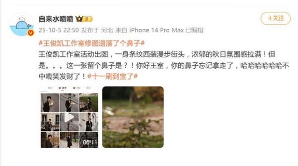 10月5日,王俊凯工作室发布的一组秋日街拍写真,竟意外上演了一场“悬疑剧”。其中一张侧身照里,背景墙上赫然残留着一道未处理的鼻子轮廓——后经网友火眼金睛鉴定,实为修图时遗漏的图层残影,形成了诡异的“悬浮鼻子”效果。原图发布后虽被迅速替换,但编辑记录却留下了这“翻车”的铁证。