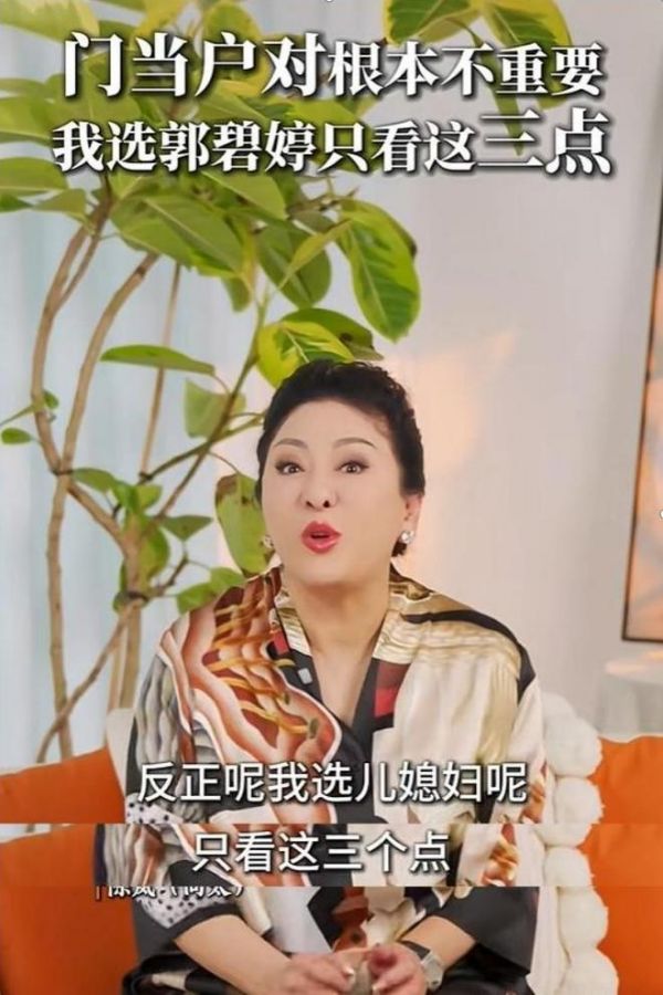 她讲自己挑儿媳的标准,很干脆,不看门当户对,她更在意人品