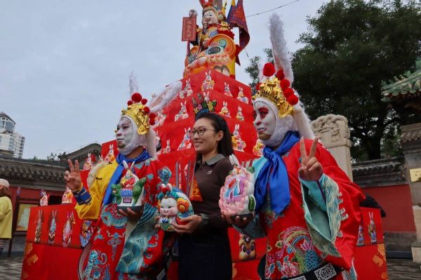10月6日,游客在非遗兔儿爷山前拍照打卡。中国日报记者 姜东 摄