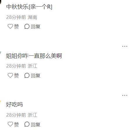 在咽下月饼后,林志玲还不忘记对着镜头说了一句“中秋快乐”的祝福语,之后还对着吃剩下的月饼亲了一个香吻,像是在隔空跟粉丝们打招呼,发送中秋节的祝福。粉丝们也看到了林志玲的中秋祝贺视频,也纷纷发送中秋节的祝福语。