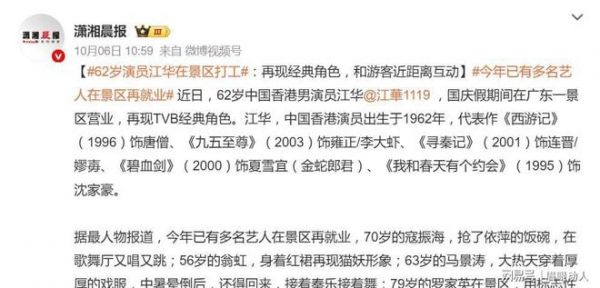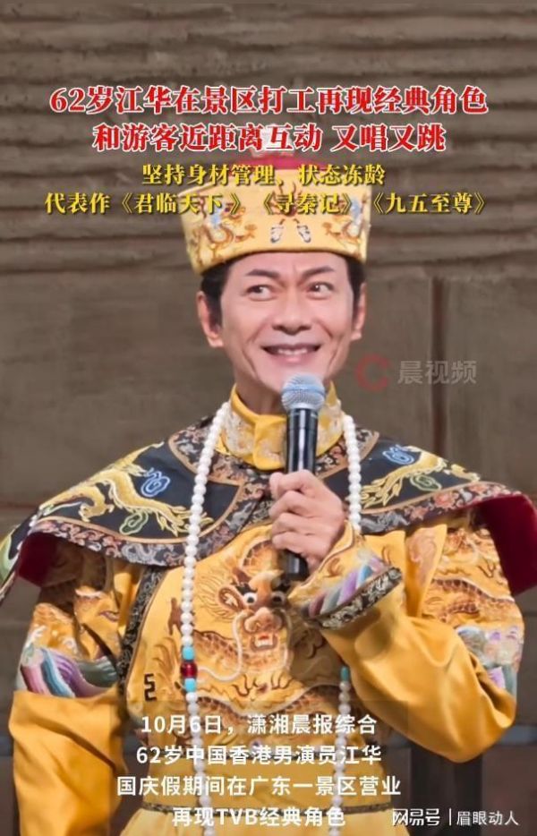 在广东某景区,62岁的江华一身唐僧袈裟,每日进行2-3场即兴表演,不仅重现《西游记》经典片段,还带游客互动改编《九五至尊》剧情;另一边,79岁的罗家英在杭州宋城顶着高温披上袈裟,用标志性的《Only You》与观众合唱,被网友感叹“敬业程度堪比当年”。