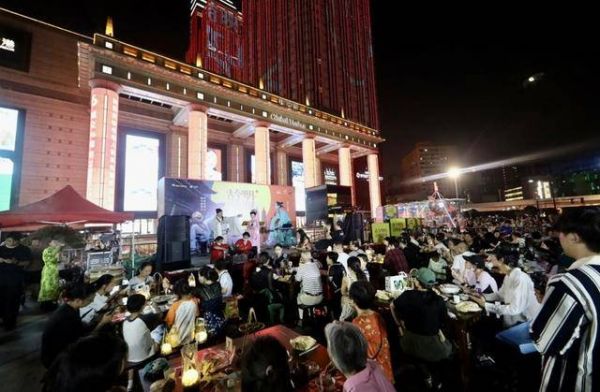一轮明月映照下,上海环球港南广场人头攒动,众多市民游客化身“诗仙李白” “诗圣杜甫”挑战对诗词,体验炸茶馓,共品桂花糕。中秋夜,上海环球港“月满华诞·国风大赏”晚会让中外消费者们在商圈里体验了一把“穿越千年”的浪漫。