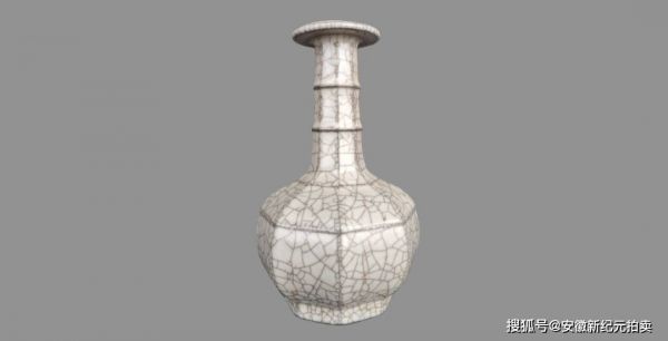 是承载宋代文化精神的艺术瑰宝:哥窑米黄釉八方弦纹盘口瓶