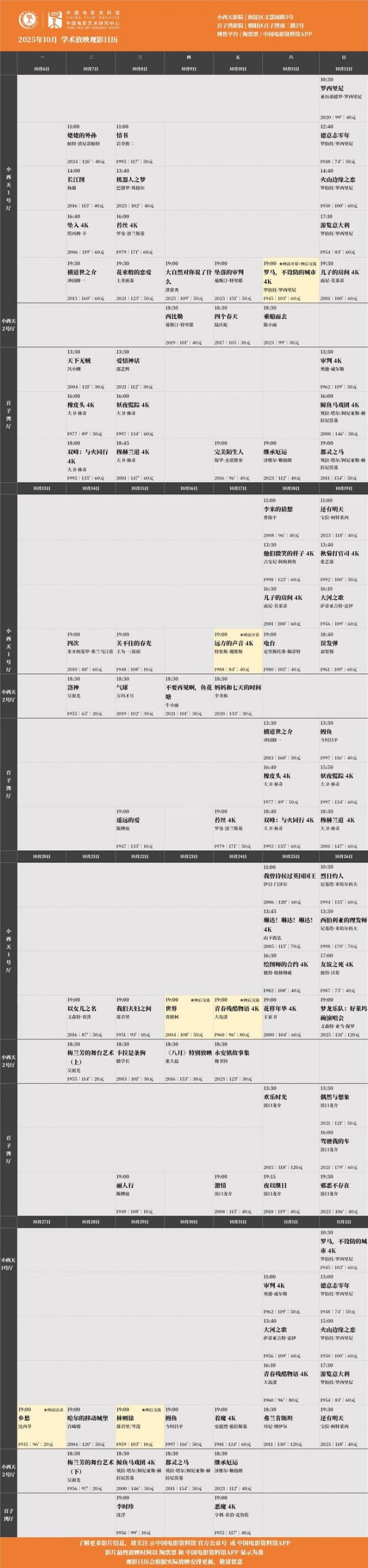 所有场次均可在淘票票、中国电影资料馆APP购票,具体排片见末图,祝大家观影愉快。❤️