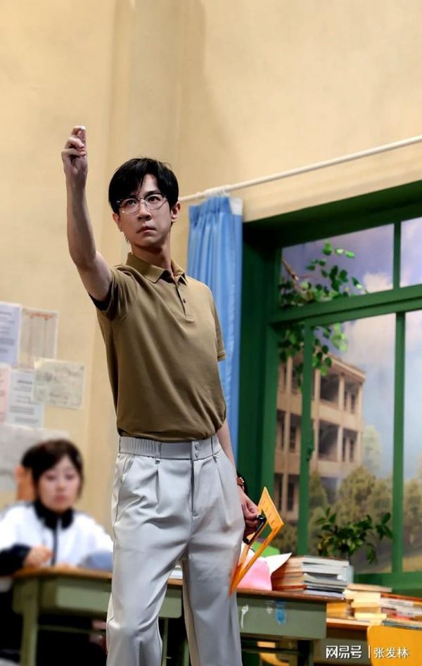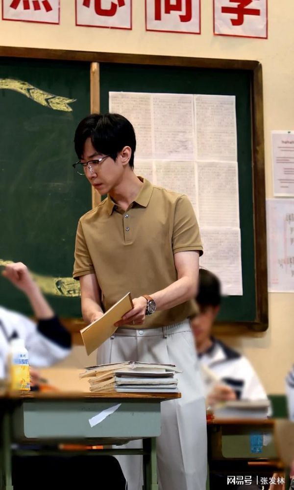 黑框眼镜的搭配更是增添了知识分子的风范,仿佛他是一位在校园中讲授知识的男教师。