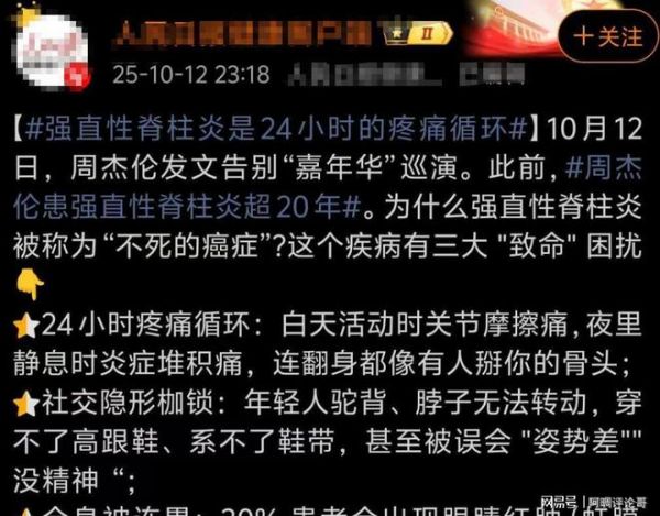 文中还透露了他的身体状态,他已经确诊强直性脊柱炎超过20多年,最严重的时候都无法移动,据了解此病也被人们称为“不死的癌症”,