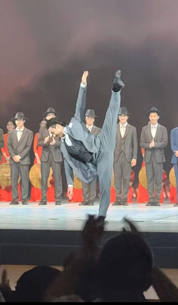 近日,福建福州,舞剧《海的一半》谢幕时,演员们各展绝技上演高难度动作…