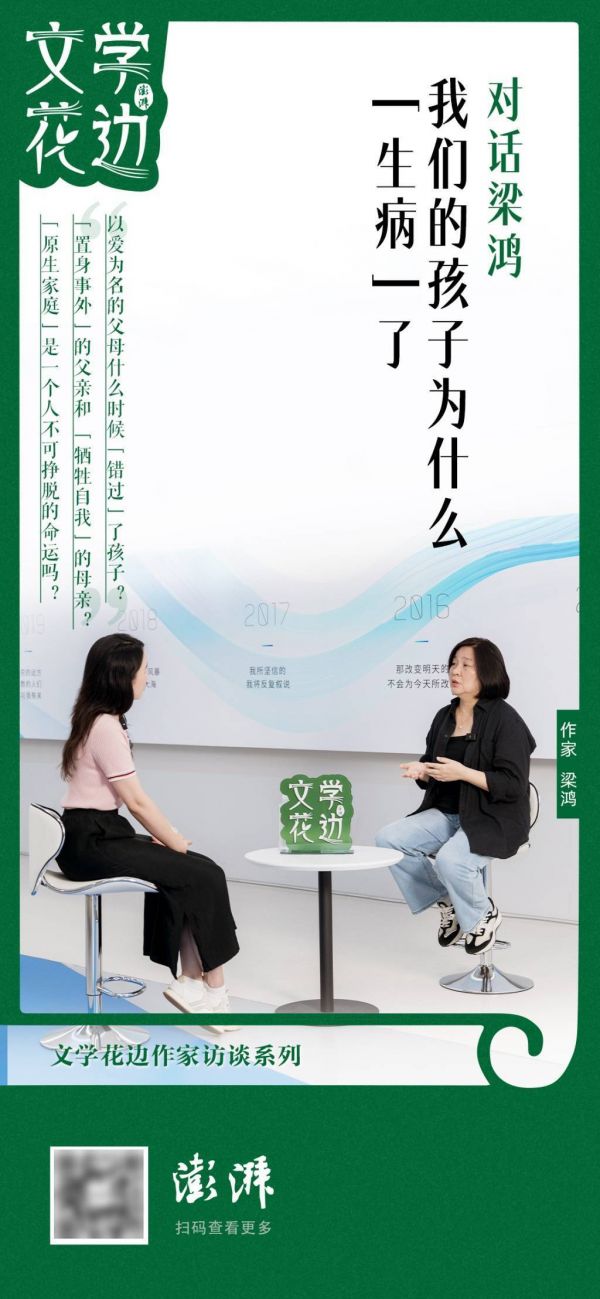 孩子们为什么“生病了”?以爱为名的父母是在什么时候“错过”了自己的孩子?为什么我们常常看到一个“置身事外”的父亲和一个“牺牲自我”的母亲?“原生家庭”是一个人不可挣脱的命运吗?……在新作出版之际,梁鸿接受了澎湃新闻·文学花边独家专访。
