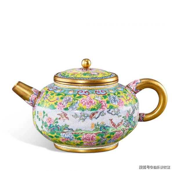 清雍正 御制铜胎画珐琅雁安图茶壶