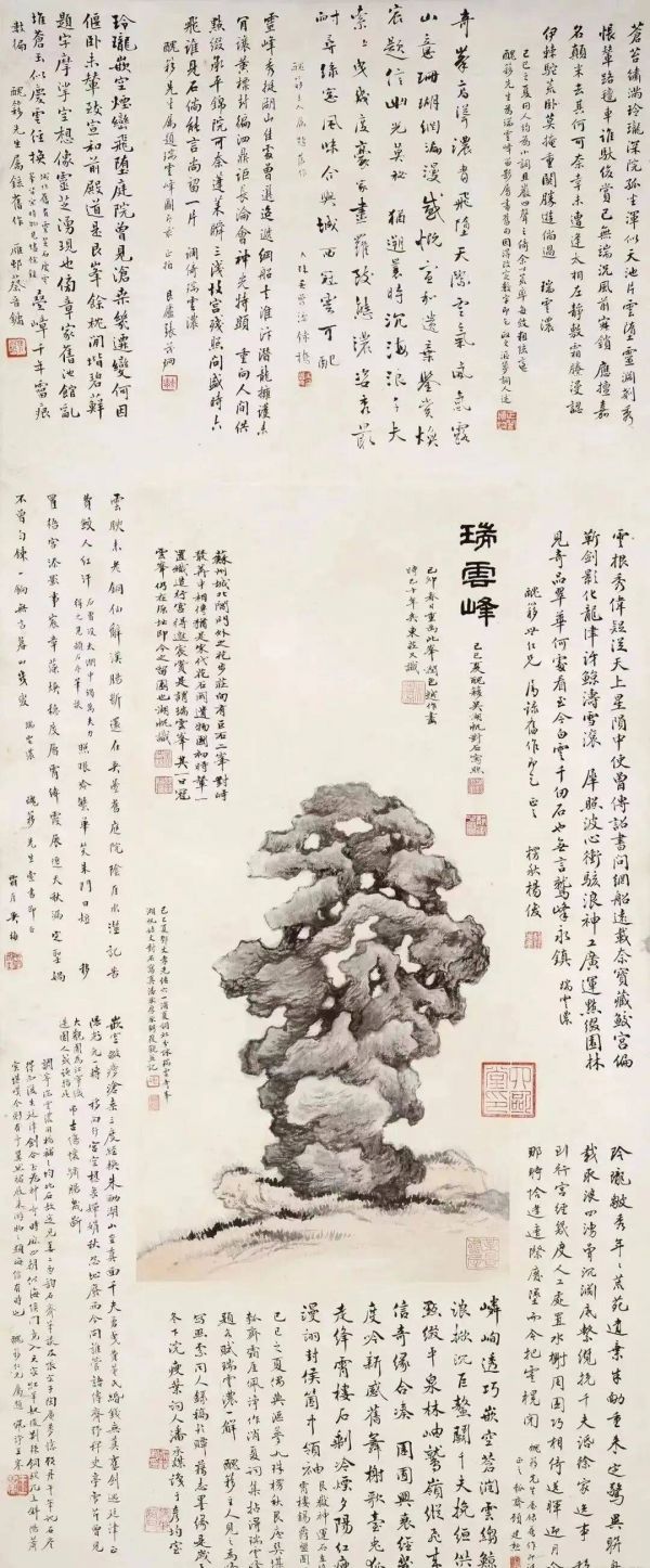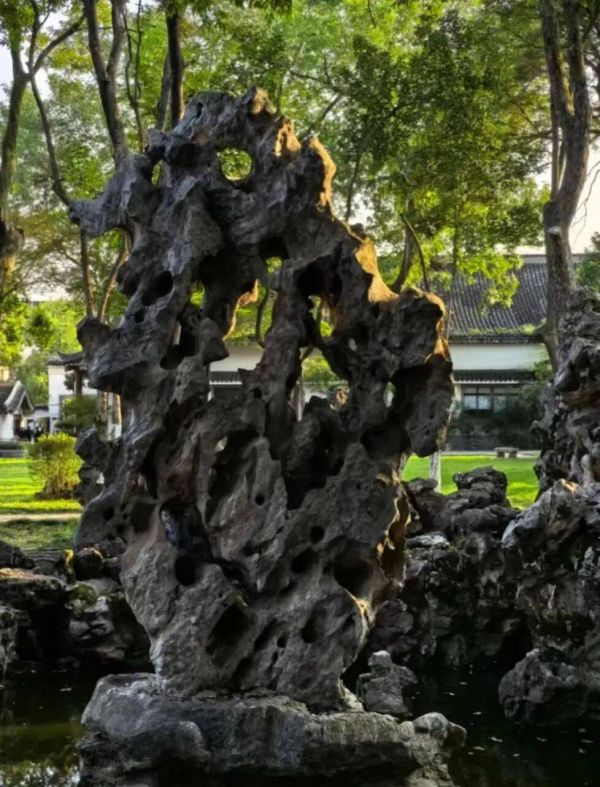 “小谢姑”则高6米,尚未运抵汴京而北宋已亡,一度沦落湖滨。直到明弘治年间为当地刚致仕的陈霁发现,遂移置家中厅前;嘉靖间为湖州董份购得,移诸吴兴,不久又嫁女徐泰时,作为嫁妆重归苏州徐氏宅园。历经袁宏道、张岱、徐树丕等的题咏,称其“层灵叠秀,挺拔云际”,所以更名“瑞云峰”。入清,为迎接乾隆南巡,又被迁移至苏州织造署行宫,即今苏州市第十中学内。石峰造型清秀,曲折如风起云涌,瘦透漏皱,涡洞相接,孔窍褶叠,玲珑有致。我是多次参观过实物的。