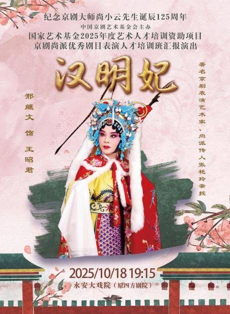 将于10月18日上演的京剧《汉明妃》的演出意义非凡,该剧是为纪念京剧大师尚小云先生诞辰125周年,国家艺术基金2025年度艺术人才培训资助项目京剧尚派优秀剧目表演人才培训班汇报演出剧目,由尚派优秀青年演员邢继文饰演王昭君,青岛市京剧院优秀青年演员悉数登场,联袂演绎一出经典大戏。