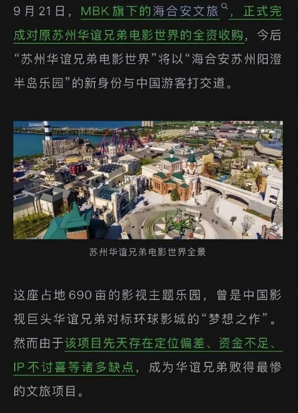 2. 文旅项目"易主":苏州华谊电影世界的收购案背后,浮现韩国最大私募的身影。更惊人的是,该资本早在2021年就启动"五城计划",以65亿巨资控股海昌海洋公园五大极地馆,完成对中国核心城市文旅节点的战略卡位。