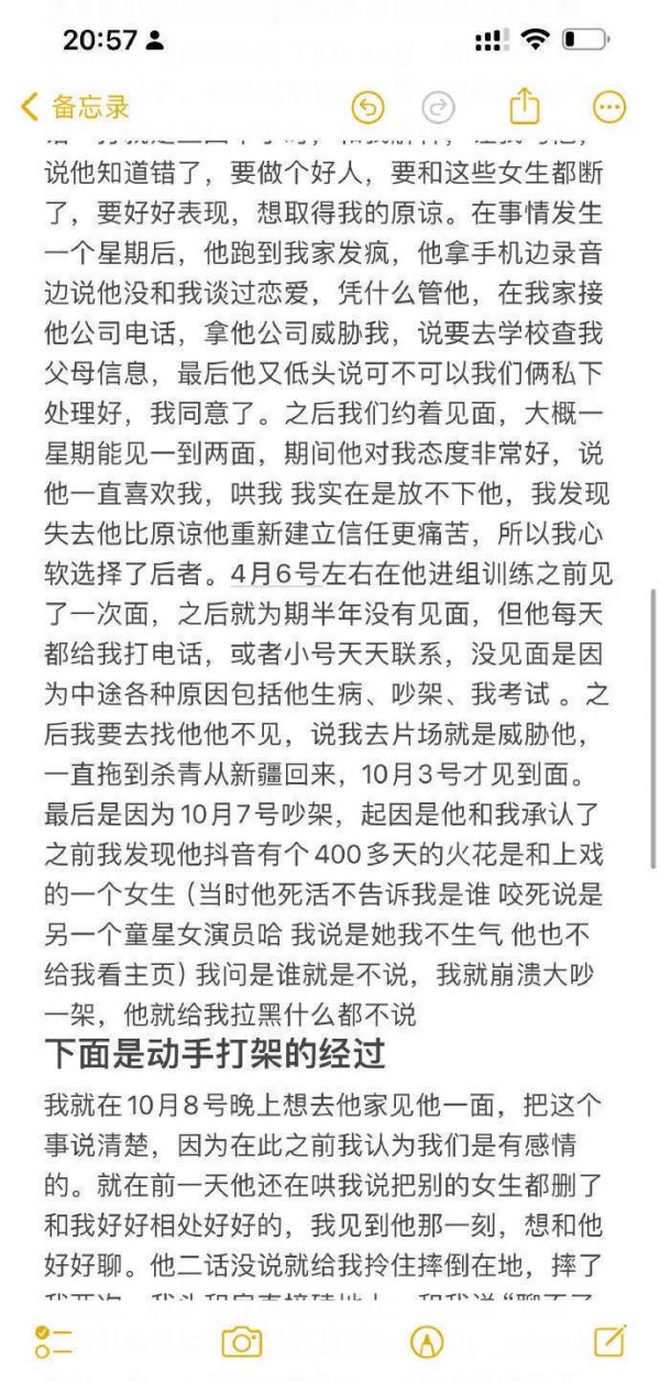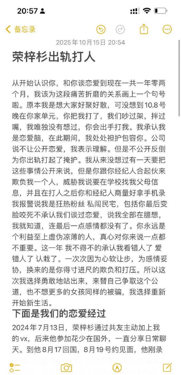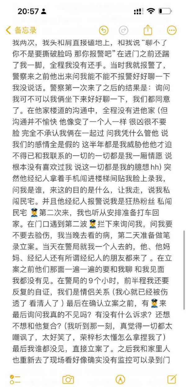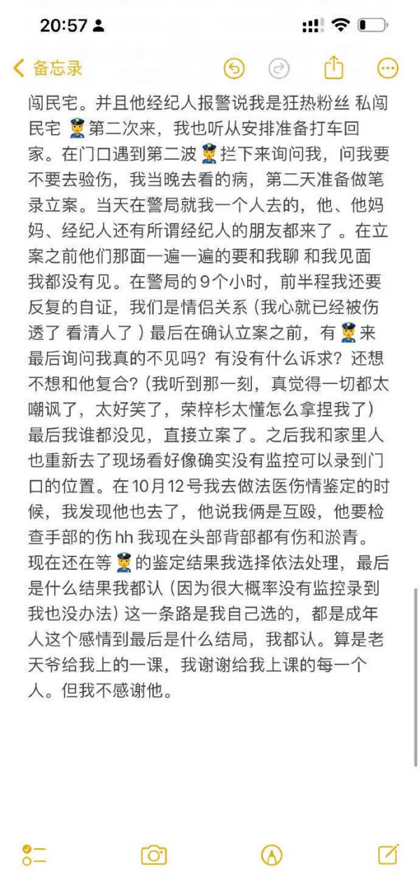 李禹熹发长文控诉19岁男友荣梓杉劈腿打人,晒出报案回执和医院诊断证明,“二话没就说把给我拎住摔倒在地”