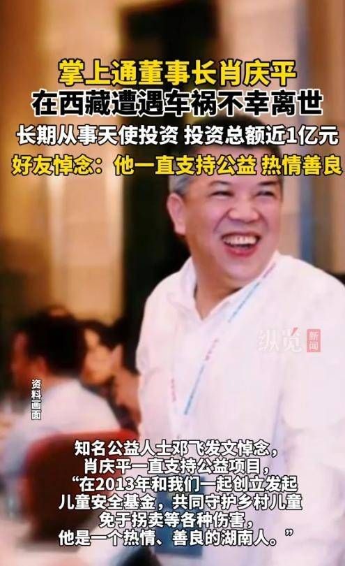 接下来是肖庆平,10月6日在西藏因车祸离世,享年61岁。肖庆平是早期的互联网先锋之一,90年代他从美国归国创办了掌上通公司,专注于移动互联网。他的公司发展迅速,后来他转向天使投资,投资了不少于四十个项目,总额接近亿元,涵盖了互联网和科技领域。肖庆平还热心公益,设立基金帮助年轻创业者,支持初创团队的成长。他每年都进行自驾游,这次的国庆假期他从四川亚丁出发,开车前往西藏,5日他在朋友圈分享了通过怒江72拐,抵达来古冰川的旅程。没想到,6日他在途中发生车祸,因伤势过重去世。昌都市殡仪馆处理了后事,朋友圈就此停滞。许多投资圈的朋友证实了这一消息,虽然他的投资项目仍在进行,但缺少了他的亲自参与,未来如何发展只能依赖团队接手。