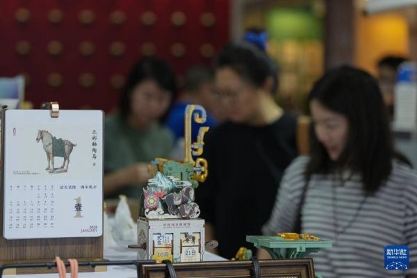 10月17日,观众在中外交流互鉴馆参观故宫博物院文创产品展区。